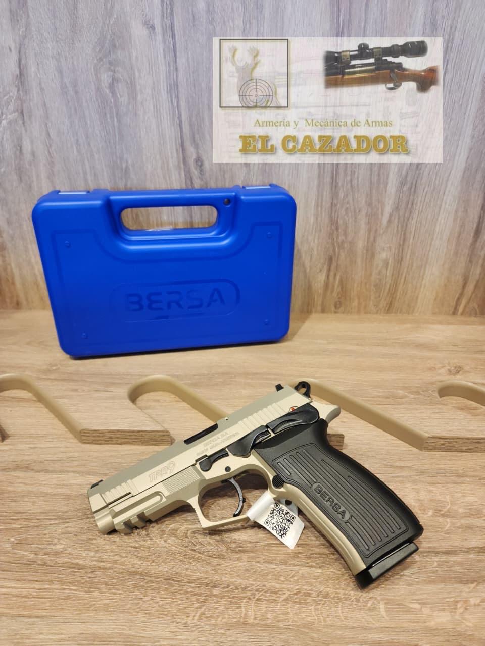 Pistola Bersa TPR9 cal 9mm. Nuevo diseño de corredera frame reforzado con grip lateral capacidad de 17+1 incluye 2 cargadores, indicador de bala en recamara, seguros y comandos ambidiestros, riel picatinny, doble fresado en corredera, cachas anatomicas antideslizante, incluye estuche rigido tipo maletin. Acabado Cerakote NIKEL.