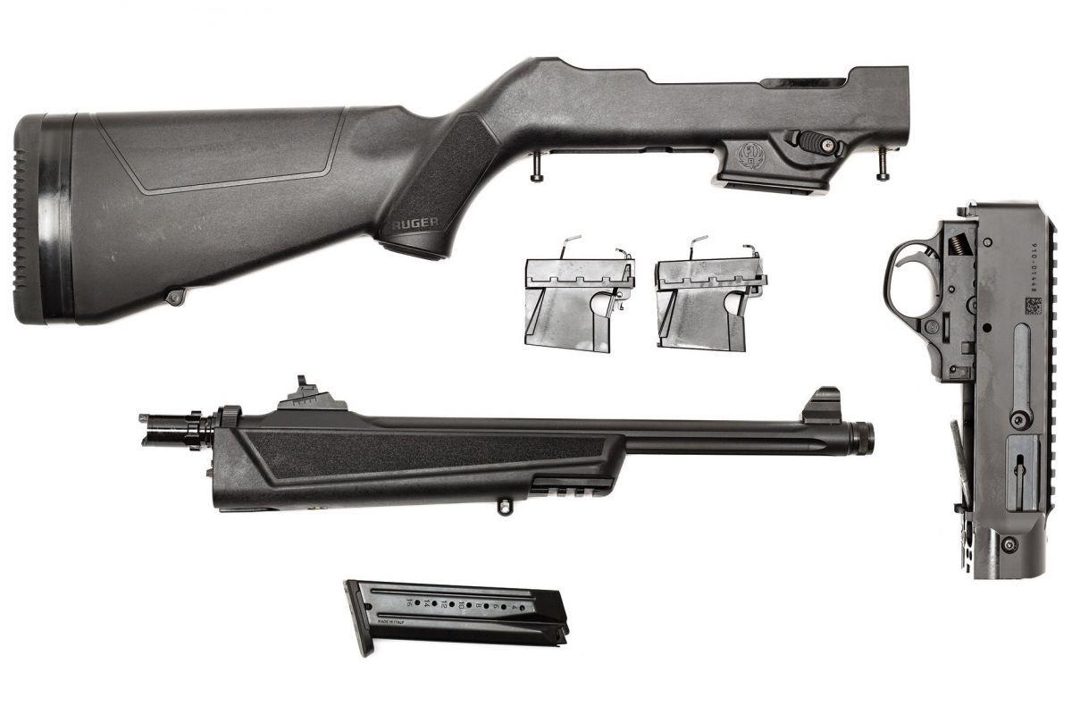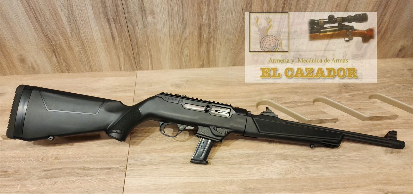 Carabina semiautomática Ruger modelo PC9 Takedown calibre 9 mm. Cargador de 17 municiones, compatibles con cargadores de Glock. Cañón de 41 cm acanalado y roscado en boca. Acción ambidiestra cambiando de extremo la manivela. Sistema takedown (para desmontar cañón). Aparato de puntería ajustable Ghost Ring / Protected Blade. Riel Picatinny para montar accesorios. Retén de cargador ambidiestro. Acción de golpe seco para reducción de retroceso. Espaciadores para extensión de culata.